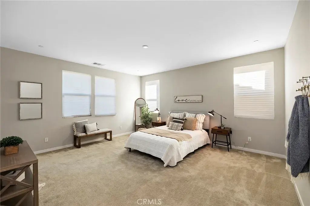 With as little as 5% down payment, you can own this beautiful home located in the highly desired prestigious lifestyle community of Park Place in Ontario Ranch. This home is beautifully designed, newer construction boasts 4 spacious bedrooms and a versatile family loft, perfect for modern living. The open and airy floor plan is highlighted by tile flooring in the kitchen and soaring 9 ft. ceilings, creating a sense of elegance and comfort. Step into the heart of the homethe expansive kitchenfeaturing stunning Maple Alto cabinets with a custom finish, sleek granite countertops, and a stylish subway tile backsplash. The large island with a convenient bar overhang invites casual dining, while the walk-in pantry ensures ample storage. Recessed lighting throughout enhances the kitchen's bright and inviting atmosphere. The upstairs loft offers a flexible space that can be tailored to fit your needs, whether as a home office, play area, or additional living space. The hall bath is thoughtfully designed with updated countertops, dual sinks, and tile flooring. Your luxurious primary bedroom, measuring approximately 18 x 16, is a serene retreat with a generous walk-in closet. The en-suite bathroom features tile flooring, upgraded countertops, a relaxing tub, and a glass-enclosed shower for a spa-like experience. Additional highlights include large secondary bedrooms (approximately 11 x 11) with ceiling fans for comfort, a convenient downstairs bedroom ideal for guests, and a laundry room equipped with upgraded counters and a laundry sink for added convenience. Step outside to enjoy t