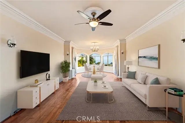 Unique oversized 2 bed, 2 bath unit with ocean views nestled within the historic Pyne Castle in picturesque Laguna Beach is available NOW! This remarkable residence offers a unique blend of modern comfort and timeless charm. From the moment you enter the gated community, you'll be captivated by the castle's architecture. As you make your way through the charming foyer to the unit, you'll be greeted by expansive living spaces flooded with natural light, perfect for entertaining guests or simply relaxing in style. The kitchen is complete with recessed lighting, stainless steel appliances, granite countertops, and a walk-in pantry. The living room serves as the heart of the home, offering 180 degree ocean views, including sunsets and Catalina Island, and a welcoming ambiance where you can unwind in comfort and style. Both bedrooms are generous in size and feature walk-in closets. Laundry is located on-site. Outside, manicured grounds surround the castle, creating a serene oasis. With breathtaking ocean views just moments away, you'll be perfectly situated to enjoy all that Laguna Beach has to offer. The community also offers a pool and spa and a BBQ area. Water, trash, gas, and electric are included. Schedule a showing today!