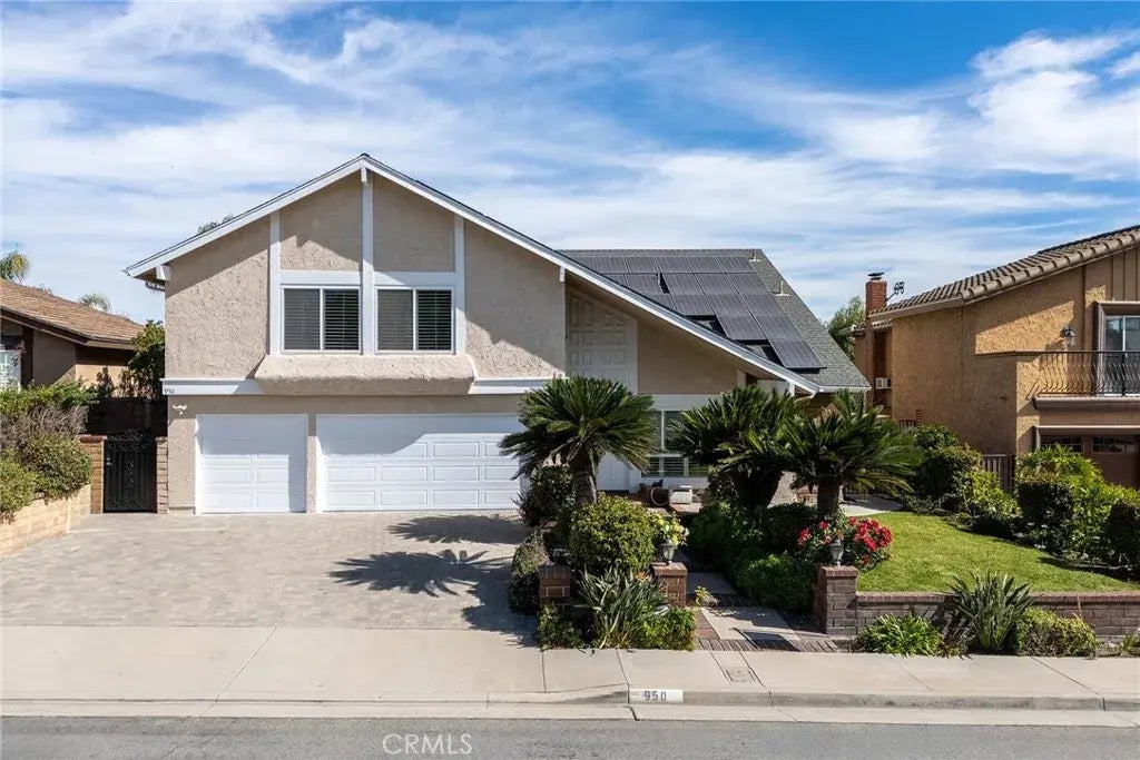 Welcome to this wonderful luxury residence in Anaheim Hillsa true haven of comfort, style, and convenience. Nestled within walking distance of Anaheim Hills Elementary and surrounded by the natural beauty of the area, this home is one of the rare properties with No HOA and No Mello-Roos, offering true ownership freedom. Step inside to discover a welcoming ambiance and meticulous design. A custom wrought-iron staircase with a stunning wood railing greets you in the foyer, leading to the spacious living room with its soaring vaulted ceiling. Ideal for hosting, the formal dining room creates a perfect backdrop for memorable gatherings. Large kitchen featuring stone countertops, a walk-in pantry, and a cozy dining area overlooking the family room. its easy to imagine evenings by the beautiful masonry fireplace, which adds warmth and charm on chilly nights. Throughout the home, dual-pane windows with elegant wood shutters offer both style and efficiency. Large master suite is a true retreat, featuring dual closets and a spa-like master bath with dual vanities. The downstairs area, with hardwood floors in high-traffic zones, ensures durability and ease. With three-car garage equipped with epoxy flooring and additional storage, organization is effortless, while the stone paver driveway offers ample parking to accommodate three additional cars and add to curb appeal. Additional features include an inside laundry room, a whole-house water softener system, leased solar panels to reduce utility costs, and a separate solar unit dedicated to the Pebble Tec saltwater pool and spa, keepin