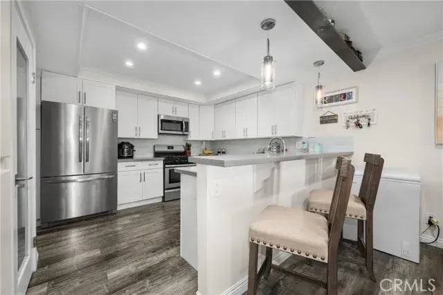 Nestled in the heart of Huntington Harbor, this chic one-bedroom, one-bath condo offers beachside living walking distance to multiple beaches. The open-concept layout is filled with natural light, highlighting designer finishes throughout. The spacious living area seamlessly flows into a modern kitchen, complete with sleek countertops and stainless-steel appliances and breakfast bar. Large interior laundry room off the kitchen. The bedroom offers a serene retreat with ample storage, and the beautifully appointed bathroom is both elegant and functional. Primary has a large walk-in closet. 1 car detached garage with extra storage area and 1 assigned parking spot (space 4). Enjoy the coastal lifestyle in this move-in-ready condo, perfect for relaxing or entertaining. Dont miss this rare opportunity to own a stylish, updated home in Huntington Harbor. HOA dues include water and trash. This resort like community has two pools, streams, two spas, basketball court, BBQ area and club house.
