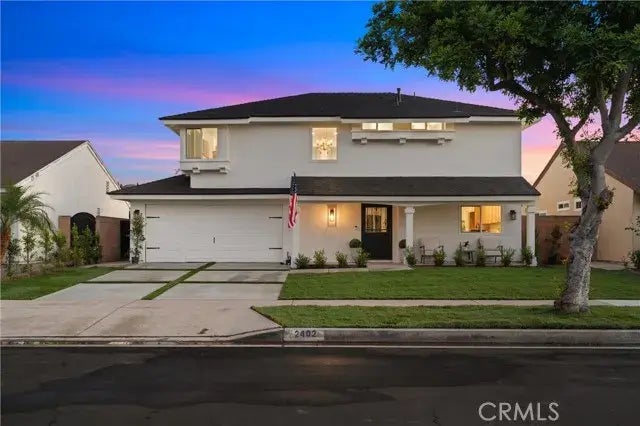 Welcome to the lovely Morning Sunwood neighborhood, a desirable neighborhood in Santa Ana. This beautiful two-story home offers functionality and style. It is a charming house with luscious green landscape and a welcoming front porch. As you enter, you are greeted by an inviting living space adorned with ample natural light and a warm ambiance. A cozy and functional custom under-stair storage. The green custom fireplace offers a pop of color to the living room, blending well with the oak cabinetry throughout the home. The living room seamlessly flows into the dining room and the kitchen. The newly remodeled kitchen features new oak shaker cabinets, quartz countertops, stainless steel appliances, a decorative floating shelf, and black and gold hardware. The convenience continues with a powder room and direct access to the garage and backyard on the main floor. With all four spacious bedrooms on the second floor, it is perfect so no child is separated. The bedroom ensuite offers adequate space, natural light, and storage. The bathrooms have been tastefully remodeled in a warm finished tile, black fixtures, new bathroom mirrors, and oak floating vanities. Continue your way to the large and spacious backyard. Perfect to add on a pool, playground, or ADU, the possibilities are endless! A new and clean landscape design with new grass and ficus trees throughout and a beautiful large pergola. Conveniently located to South Coast Plaza, Segerstrom Center of The Arts, and much more! Don't miss out, schedule your showing today!
