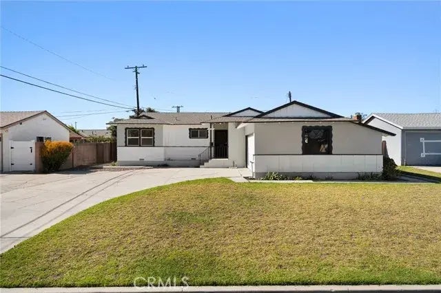 This traditional mid-century ranch style home has a practical layout that will work for many lifestyles. Freshly painted inside and out, this 3 bedrooms, 1 bath home has an open pensinsula kitchen that flows into a dining area and optional secondary living space, office, or third bedroom. The hallway bathroom is generously sized. Two additional bedrooms complete the floor plan that includes wood floors throughout as well as HVAC, a covered back yard patio, ample grass in the back yard and an attached 2-car garage. Dont miss out!