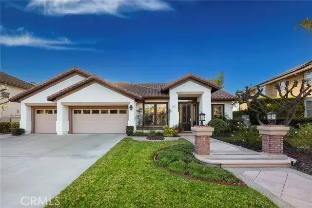 Nestled in the sought-after Eastlake Village community of Yorba Linda, this elegant single-story home offers spacious and luxurious living with a light and bright open floor plan. The home features three bedrooms, two with en-suite bathrooms and three full bathrooms, providing both privacy and convenience for all. The kitchen is a chef's delight, equipped with a double oven, granite countertops, and an abundance of cabinetry, flowing seamlessly into the family room where a cozy fireplace adds warmth and charm. A breakfast nook overlooks the backyard and city views, while formal living and dining rooms provide an inviting space for entertaining. The oversized primary suite offers a spacious bathroom with dual sinks, soaking tub, shower and walk-in closet. Step outside where the firepit invites relaxation under the stars, built-in bbq and covered patio set within a large, scenic lot that maximizes privacy and views. It is the perfect backyard for having fun with family and friends and watching the sunset. With over 10,000 square feet of land, a three-car garage, abundant storage and racking, inside laundry room with sink and thoughtful design details, this home embodies comfortable elegance in a premier Yorba Linda location. East Lake amenities include pools, spas, sports courts, exercise room, club house for events, fishing, boating and more.