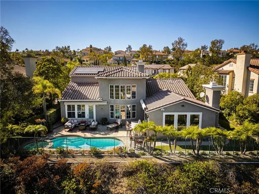 Welcome to your dream view estate, where luxury meets tranquility! Rarely available with the primary suite located on the main level, this stunning home has been meticulously remodeled throughout, showcasing top-tier finishes that elevate every corner of the property. Enter through a gated courtyard to an expansive floorplan with two story floor to ceiling windows to enjoy the breathtaking views. A contemporary kitchen is a culinary delight featuring newer custom cabinetry, built-in Thermador refrigerator and full sized wine refrigerator, a professional Thermador stove with pot filler, and a spacious island perfect for entertaining family and friends. The kitchen extends to the large family room and enjoys a sophisticated fire and ice fireplace as well as a built-in entertainment center. The formal dining room with its unique two-story stone fireplace is open to the formal living room with an incredible furniture quality built-in bookcase. A luxury primary suite is a true retreat, featuring a spa-like ensuite bathroom with dual vanities, quartz counters, a soaking tub, lighted mirrors, a state-of-the-art walk-in shower as well as an organized walk-in closet. From the primary suite you can step outside to your private paradise! The beautifully landscaped backyard features a sparkling pool & spa perfect for relaxation and entertaining. Guests will enjoy al fresco dining or sitting around the barbecue island. Golf Anyone! Practice your putting skills on your private putting green all while viewing the natural hillsides, dramatic canyons and sparkling city lights This estate ho