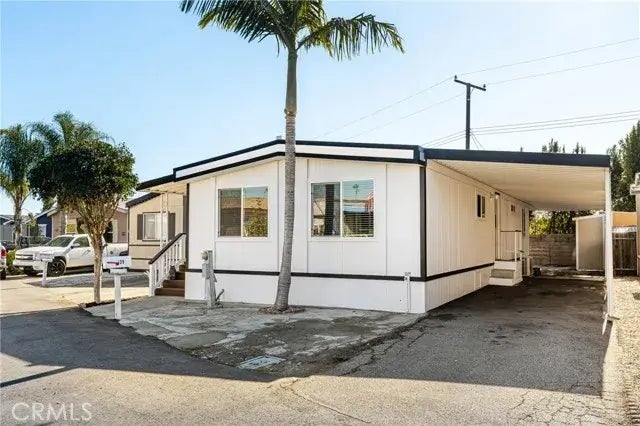 Welcome to this fully remodeled 3 bedroom, 2 bath manufactured home located in the tranquil community of View Park Mobile Estates. This beautifully updated residence showcases a modern design with high-end finishes, making it the perfect place to call home. Step inside to find an inviting open living room with a cozy fireplace that seamlessly connects to the kitchen and dining area. The kitchen boasts elegant quartz countertops, a stylish tile backsplash, stainless steel appliances, and shaker cabinets. Additional features include laminate flooring throughout, recessed lighting, a convenient indoor laundry area, mini split AC, sleek black and white exterior paint, bedroom closets with built-in storage, and an attached carport with parking for up to three vehicles.