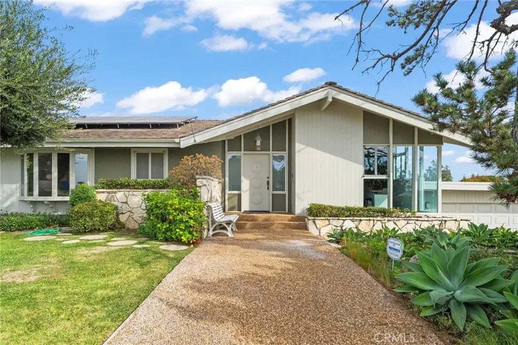 Nestled on a tiered slope in the scenic Raymond Hills of Fullerton, this beautifully updated 3-bedroom, 3-bathroom mid-century modern home offers both style and functionality. The open-concept design features vaulted wood-beamed ceilings and a fully remodeled kitchen, perfect for entertaining and everyday living, while floor to ceiling windows frame spectacular views of Fullerton and beyond. The spacious lot is a true standout, with mature fruit and avocado trees that create a serene, private oasis. Whether you're enjoying the natural beauty from the deck or harvesting your own fresh produce, this home's outdoor space offers endless possibilities. A bonus room with a half bath adds flexibilityideal as an office, home gym, or guest suite. This home also comes with energy-efficient owned solar panels, providing both environmental and cost-saving benefits. Located in a peaceful neighborhood with easy access to parks, and local amenities, this mid-century modern beauty combines classic charm with modern convenience. Don't miss your chance to own this stunning property with unbeatable views and character!
