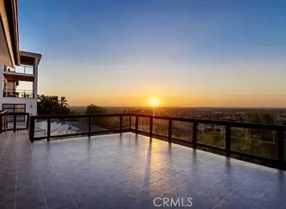 This stunning North Tustin home has a breathtaking panoramic view! Taking in the view from the huge front deck, it feels like all of Orange County is laid out at your feet. At night, the city lights sparkle like gems in a treasure chest. By day, you see all the way to Catalina Island with the Pacific shining across the horizon. Arriving at the home after passing other stunning custom homes, you go from the garage level up to the elegant foyer. A few steps up the spiral staircase to the right takes you to the stunning and sprawling great room with a rustic stone fireplace open to the enormous kitchen with glistening granite counters, stainless steel appliance and a room sized walk-in pantry. Just around the corner is a large wet bar that can double as a butlers pantry. On the opposite side is a spacious formal living room and dining room with fireplace that also take in the magnificent view. Theres also laundry and powder rooms on this level. Continuing up the staircase you find an opulent owners suite with a large view deck, a fireplace and a sumptuous private bath with a big walk-in, multi-head shower, an elegant soaking tub and a walk-in closet. Also on this level are 3 secondary bedrooms that share a hall bath. Back to the foyer on the left over the garage you find a junior suite with a large living room with a private balcony and an adjoining ensuite bedroom with a walk-in closet and private bath with a walk-in shower and linen closets. Accessed from the main level is a private bake yard with a large covered patio and care free artificial turf and plenty of room for out