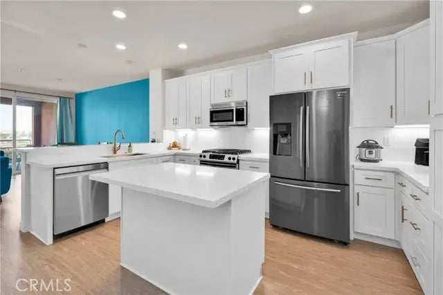 Welcome and Embrace Metropolitan Living in Central Orange County. An outstanding unit, renovated and refreshed for immediate move-in. This corner unit allows you to enjoy city light views and the festive Disneyland and Angel Stadium fireworks. It's highly desired floor plan offers a functional-spaced kitchen with a center island that lends additional work space or table for quick everyday meals. Stainless steel appliances complements the fully remodeled kitchen, featuring quartz countertops and brand new white cabinetry. Clean lines neatly separate all other spaces for comfort and easy decorating. 2 additional secondary bedrooms are spotless with full-sized closet space. Both bathrooms are fitted with shower over tub for a restful and relaxing retreat. The inside laundry can accommodate a side-by-side washer and dryer, tucked away in a separate closet. The interconnected living and dining area extends to a covered balcony for outdoor seating. Laminate vinyl wood flooring combined with carpeting, refreshed walls, an inside laundry and a recently installed Heating and Airconditioning System, ensures a comfortable accommodation. Stepping out to the common courtyard, is a Zen-inspired gardens. The outstanding community amenities features a sparkling pool & spa, BBQ area, fire pit, a clubhouse with a full service kitchen and a fully outfitted fitness room that's regularly maintained and sanitized. Right around the community's corner is a park for dog walking. The unit comes with 3 assigned parking spaces on parking level 1. Top this with ideal Orange County location, with easy a