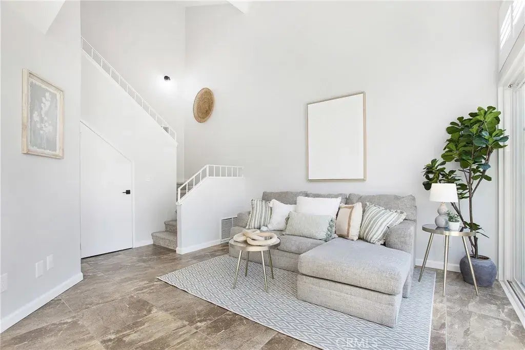 Welcome to this beautifully designed 2-bedroom, 2.5-bath home, where comfort and style come together effortlessly. Situated in a sought-after gated community, this home offers both privacy and security. As you enter, youre greeted by high ceilings and an open, airy floor plan that creates a spacious feel throughout. Both bedrooms are generously sized, featuring large windows with plantation shutters that offer an abundance of natural light and beautiful views of the neighborhood. The closets are spacious, with the primary suite offering a large closet complete with built-in mirrors, providing both convenience and style. The primary bath includes a large vanity, adding a touch of luxury to your private retreat. The living room and dining area are highlighted by elegant tile flooring, which enhances the sophisticated atmosphere. Sliding glass doors lead to a private patio, perfect for relaxing outdoors or hosting guests. The kitchen is bright and modern, with light-colored cabinetry accented by sleek black hardware, creating a welcoming space for cooking and entertaining. This home also includes a 2-car garage for parking and extra storage. Located just 10 minutes from Knotts Berry Farm, downtown Buena Park, and only 20 minutes from Disneyland, youll have easy access to the best local attractions while enjoying the tranquility and security of your beautiful home in this desirable gated community. Community features include a pool/spa just across the street from this unit. Don't miss out on this opportunity - schedule your private tour today!