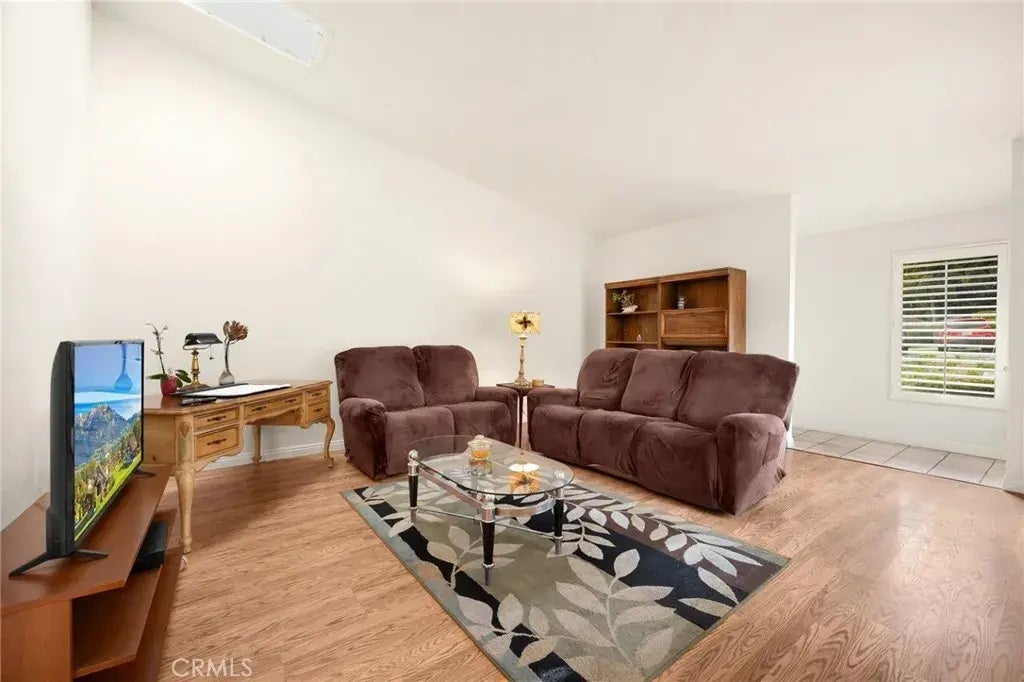 Welcome home! This stunning single story end unit home with no one above or below you is move-in ready and is a perfect blend of comfort and elegance in the highly sought-after La Mirada Landmark Adult Active 55 + community. With 1132 square feet of interior space this beautiful home features 2 spacious bedrooms, and two bathrooms. This unit has an abundant amount of parking right in front of the home making it very easy for the homeowner and guests. The home is freshly painted and has a newer HVAC unit that was installed in 2021. As you enter the home you will notice the soaring cathedral ceilings and open floor plan making the home so light and bright. The kitchen has lovely granite countertops, the bathrooms have beautiful upgraded cabinetry, and the master bathroom has an upgraded walk in bathtub for extra comfort and safety. The large sliding door opens to a private patio, perfect for enjoying your morning coffee or hosting small gatherings. This home is part of a vibrant community known for its resort-style amenities, including a clubhouse, activity center, spa, swimming pool, fitness center, tennis courts, library, and a monthly calendar of fun events! This HOA covers trash, interior and exterior water, front yard landscaping all exterior maintenance and so much more! The beautifully landscaped grounds are meticulously maintained, offering a serene atmosphere with the added peace of mind of a 24-hour, seven days a week security guard. This unit has one of the most desirable locations in the community with easy parking and a single car garage. Conveniently located in