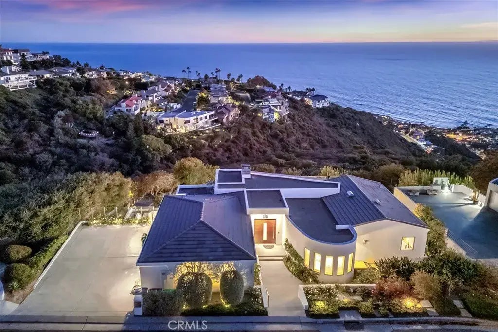 Simply stunning! Welcome to this breathtaking contemporary custom estate, where modern elegance meets coastal luxury in the heart of Laguna Beach. Sitting on the front row with an expansive 12,000+ sf lot is this 4-bed 5.5-bath masterpiece with a three-car garage. A design that harmonizes luxury, sophistication, and comfort. The panoramic ocean, white water, Catalina, city, and canyon views cover almost all the rooms of the approximately 6,200 sf of elevator served coastal living. The stacking sliding doors in the great room disappear into the walls and create a perfect in-door out-door living at the view deck overlooking the Victoria Beach. 10-feet wide fireplace added extra coziness and warmth and is perfect to a family gathering. Boasting 4 spacious bedrooms, including a luxurious primary suite with ginormous his and hers closets and an oversized ensuite bathroom, every detail has been meticulously designed for relaxation and style. Each of the three secondary bedrooms features its own private ensuite bathroom, offering an elevated sense of privacy and convenience for family and guests. The chef-inspired kitchen with wok station, steamer, double ovens, and a oversized exhaust system paired with built-in fridge, freezer, wine cooler, walk-in pantry and a butler's kitchen, is a culinary dream. The level of sophistication is truly eye-opening. For entertainment, the 8-seat home theater promises cinematic excellence, while the custom-constructed in-door out-door lap pool with its own pool bath, the expansive outdoor kitchen and BBQ, together with spacious wrap-around decks a