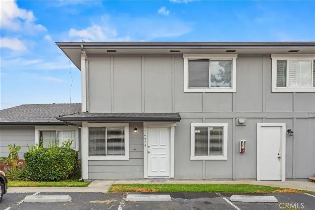 Welcome to this lovely Huntington Beach home at 16684 Arbor Circle, located in a prime peaceful interior location within the Huntington Gardens Community. This coastal home features 2 bedrooms, 1 bath, of 835 sq. ft of living, with a 1 assigned parking space in a shared 2 car garage with a neighbor, 2 extra storage areas in the garage (# 84), and access to an attached laundry room shared with only 3 neighbors. This community offers a low HOA of $335.00 with lush green belts with mature trees, ample convenient parking, swimming pool with BBQ's, basketball court, large dog park, sidewalks to bike to the beach. The HOA also covers, trash, common laundry water, exterior landscape in the common areas & exterior termite. This wonderful home has an open, light & bright concept, recently painted, new luxury vinyl plank flooring in the living room, kitchen and dining area. New window blinds throughout, new carpet on the stairs leading up to the second level with 2 bedrooms & 1 full bathroom. Both bedrooms are nice size, new carpet and recently painted and the primary bedroom has a walking in closet. There is a linen closet conveniently located in the upstairs hallway, also a newer furnace inside another closet in upstairs hallway. The upstairs full bathroom was recently updated with new luxury vinyl plank flooring, shower/bathtub combo, new sink vanity, new faucets and new mirror. The kitchen is open with a high breakfast bar with lots of cabinets, pantry, utility closet, new luxury vinyl plank flooring, stove and hood vent. Your home is situated by neighborhood shopping, dining, ea