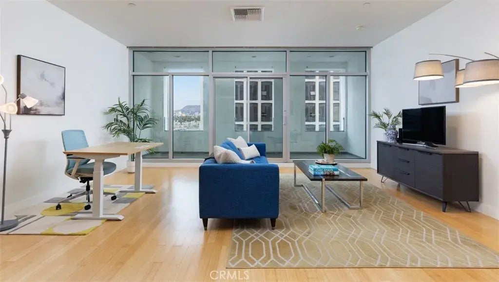 Discover refined living in the largest one-bedroom unit at The Mercury, a stunning adaptive-reuse loft-style condo situated on the prestigious Wilshire Corridor. Originally an office building, this remarkable conversion offers breathtaking views of Los Angeles complemented by luxury amenities. Step inside to find abundant natural light streaming through a striking wall of windows, illuminating an open-concept living space with high ceilings. The sophisticated design features high-end sliding glass doors that seamlessly separate the sleeping area, integrating style and privacy. The modern kitchen enhances the unit's flow, perfect for both everyday living and entertaining. Additional features include an expansive walk-in closet, in-unit laundry for convenience, and secured parking for peace of mind. The Mercury enhances your lifestyle with a rooftop terrace boasting a swimming pool, a state-of-the-art fitness center, and an outdoor lounge area offering incredible views, providing the perfect venue for relaxation and leisure.