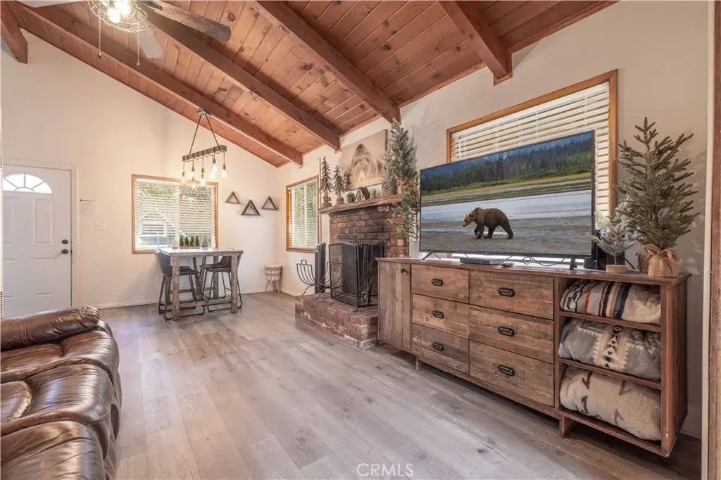 The National Forest is your backyard! Welcome to the perfect mountain retreat ~ this adorable 2-bedroom cabin offers the ideal blend of comfort and charm, featuring upgrades like new flooring throughout, newer interior and exterior paint, a fully remodeled bathroom and a tasteful decor. You'll love the spacious gathering area with stunning wood-lined vaulted ceilings ~ whether youre relaxing after a day on the slopes or enjoying quality time with friends and family, this space is designed to feel like home. Nature lovers will adore the unbeatable location with direct access to the National Forest, providing endless opportunities for hiking and biking. Conveniently situated just moments from Bear Mountain, the vibrant Moonridge corridor, and all of Big Bears main attractions, this cabin is the perfect base for year-round adventure. Move-in ready and brimming with rustic charm, this turnkey gem wont stay on the market long. Your Big Bear dream cabin awaits!