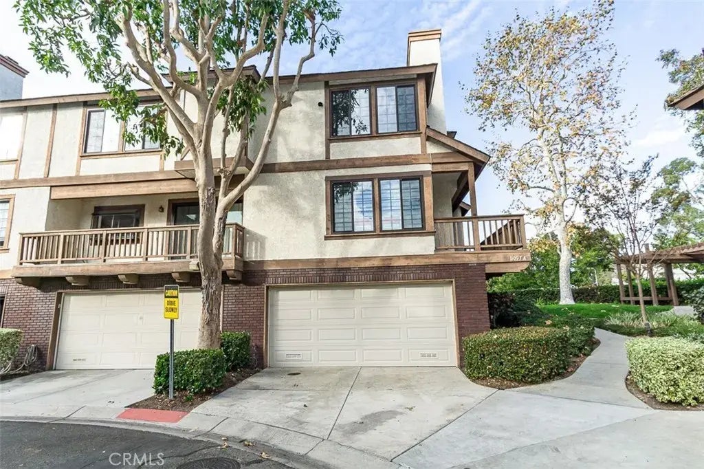 Beautiful well-maintained end unit town home within a security gated complex. Wood laminate flooring throughout entire home and all windows and recessed lighting have been newly upgraded. The living room contains fireplace and is connected outside to a spacious balcony. The dining room contains a wet-bar and is also connected to an outside balcony. The kitchen comes with many cabinets for storage and recently upgraded appliances (microwave, stove, dishwasher). Two large master suites with walk-in closet. Attached two-car garage with direct access. The home also comes with a convenient inside laundry. The complex comes with several amenities; pool, spa, guest parking, and quick access to a friendly pet park. Also conveniently located near the library, park, shopping center, and the twenty two freeway.
