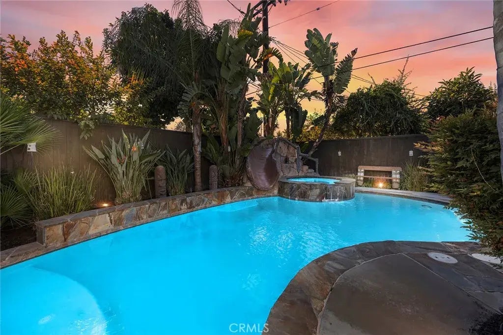 The DIAMOND in the haystack. That's right, if you want a super cute house with a picket fence and your very own private oasis, there is nothing like this on the market in Fullerton under a million dollars! This house makes you the entertainer of the year with this incredible backyard dream. Custom heated pool and jacuzzi with a rock vibe slide, large island, TV, outdoor showerneed I say more? I know you're already planning your first party! The inside? Ooh la la, she's adorable. New flooring throughout the house, the kitchen has new quartz countertops with a marble backsplash and large sink. The 3 bedrooms are spacious, and the master bedroom is more like a large suite with a fireplace and view of the gorgeous pool, and there are 2 bathrooms. If you are a car guy, this will put you in heaven! The large side of the house has a front gate with a detached garage in the back work on your toys and no one can see! RV or boat parking, too! This house is the biggest winner winner chicken dinner.