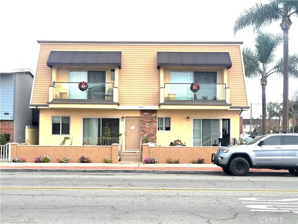 This picturesque building says "Welcome Home" to the whole beach community! Enjoy a brisk sandy stroll to the beach across the street from your unit walk a few blocks to our Main Street shops and restaurants. Featuring a lovely upstairs, 2 bedroom 2 bath unit with laminate vinyl floors throughout and a freshly painted interior, a refrigerator, a new stove and new dishwasher. Both bedrooms are spacious, have dual paned windows and blinds. The cozy dining area has a ceiling fan and built in drawers for multiple storage options. It is situated adjacent to the large sliding door which allows you to enjoy the ocean breezes . There is also a one car garage with opener and storage cabinet, plus a common laundry room onsite. It's Beach Living at its best!