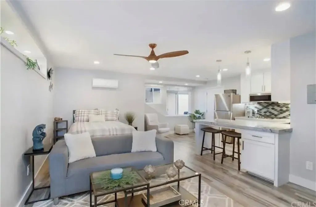 Welcome to 2559 Rimcrest Rd. City of Brea. When a property is as unique as this sometimes it takes longer to find a great tenant so ignore the days on market and call now! ~ You do not want to miss this Unique Living Space which is unlike any other standard Studio Apartment rental. Pictures are not staged this lovely Studio Apartment is fully furnished ~ ALL utilities paid, a big screen TV with Cable and Use of HOA amenities included ~ The moment you walk into the front door of this fully Furnished Studio Apartment space you will be amazed. Not only is this Studio beautifully furnished and shows like a model home but the space is used in such a unique way it appears larger than its 475 Sq. Ft. ~ Enter into the unit and the 2 double paned windows offer natural light, along with the recessed lighting. You have a well-appointed kitchen complete with a Decorative Backsplash ~ Quartz Countertops ~ Stainless Steel appliances including Refrigerator, Microwave, Gas Stovetop and an Island / Breakfast Bar with stools. The Bed has large storage drawers and there is more storage in the provided armoire. The Bathroom has a tiled large walk-in shower with a bench style seat and a hand-held sprayer, lovely sink /vanity, linen cupboards with towels and a full-length mirror. Enjoy your down time with the wall mounted 65" TV and sitting area. Parking is 1 space in the shared 3-Car garage with some available storage. There is no laundry on-site. Rent includes all utilities: water ~ trash ~ electric ~gas ~Wi-Fi ~Cable TV and access to all the Community Amenities has to offer Pool ~ Spa ~ Tenni