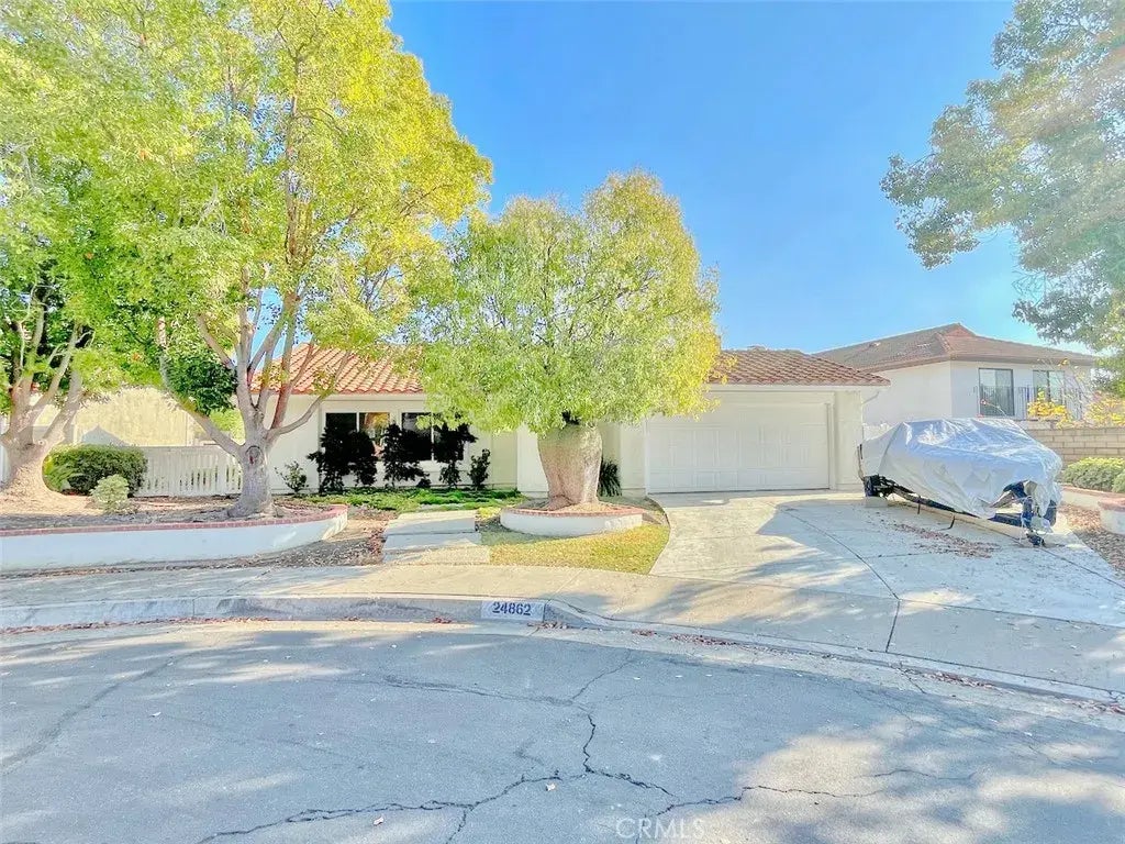 Just in time for the Holidays!! Your chance to purchase this 3 bedroom/2 bath single-story home with over 1800 sqft. This highly sought after Madrid community home in beautiful Mission Viejo sits at the end of a cul-de-sac street. What better way to start 2025 than to own this special home. Sitting on a large lot (over 8500 sqft) with a large blank canvas backyard that is ready for you to customize and create your dream home. This amazing location has no one behind you and enjoys peaceful views of trees lining the Oso Creek Trail. In fact, you can walk just down the street to enter this beautiful trail. Inside the home, you will find newer windows and sliding glass doors. The flooring consists of stone tiles, laminate wood and carpet. The kitchen has been updated with wood cabinets and stainless-steel appliances including double ovens, cooktop and dishwasher. The master bedroom is large and has mirrored closet doors, built-in cabinets, skylight and enjoys those peaceful tree-lined views. The family room has a warm fireplace for your enjoyment. The living room and dining rooms have vaulted ceilings as well as those same peaceful views of the tree-lined Oso Creek Trail. The secondary rooms are good size and one has custom built-in cabinets and murphy bed. As a bonus, there is possible boat/RV parking. The community enjoys access to the amazing Capistrano Unified School district as well as membership to Lake Mission Viejo with all that it provides (beaches, boating and concerts to name a few). There are so many possibilities waiting for you with this home. Dont wait, make your