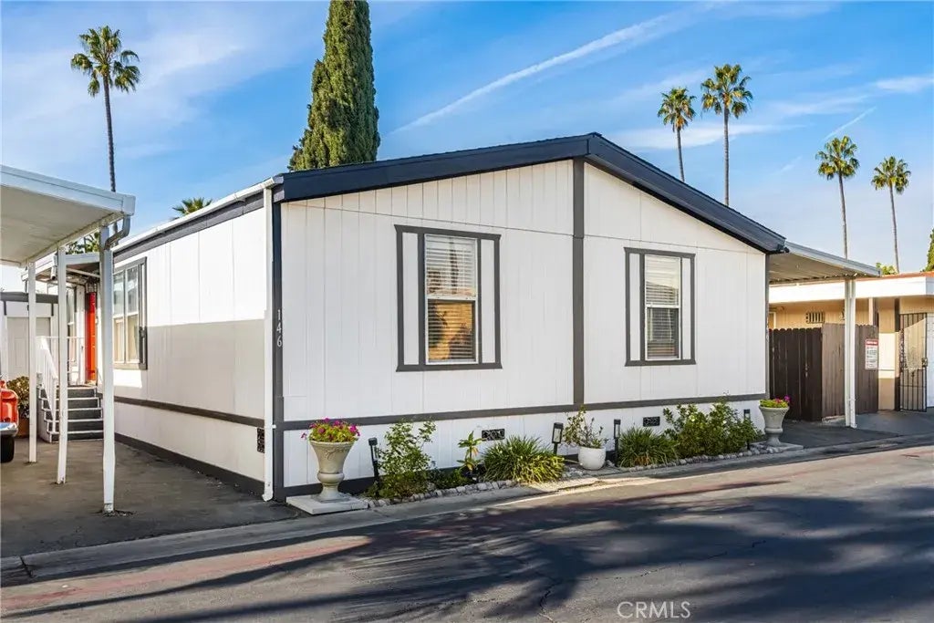 Welcome to 12560 Haster - Stunning, Move-In Ready, Prime Location! This beautifully updated home boasts a new roof, newer interior and exterior paint and laminate flooring throughout for a fresh, modern feel. The open-concept floor plan with vaulted ceilings and dual-pane windows creates a bright, spacious living environment. A new bathtub and shower offer a luxurious retreat, while a separate laundry room and new dishwasher add to the home's convenience. Enjoy outdoor living in your enclosed backyard with a patio and artificial turfone of the only homes in the park with this featureperfect for low-maintenance relaxation. Two storage sheds provide plenty of room for your belongings. Located in a quiet community, this home is just steps away from shopping and dining at the Outlets at Orange and offers easy access to major attractions like Disneyland, Knott's Berry Farm, the beach, and LA. Dont miss out on this exceptional opportunity!