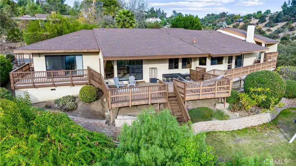 Welcome to 1720 Pueblo Crest Lane! A special property in La Habra Heights waiting for it's new owner. The home boasts panoramic views of Catalina Island, city lights, canyons and hills, you will see the Disneyland firework shows every night. Custom built Ranch Style home featuring 4 bedroom and 3 baths. As you enter through the impressive double doors with beveled glass you are greeted by a foyer accessing the home that is split into two wings. A open floor plan with floor to ceiling windows that lets in the natural lighting and highlights the views from the living room, kitchen, dining room, family room and primary bedroom. There are Vaulted and beamed ceilings a beautiful chefs kitchen, dining room, living room, spacious primary suite, plus one additional bedroom. In door laundry room with plenty of storage. An additional room is accessed from the outside and is the perfect for a home office, craft room, home gym can easily be converted to an additional living space. A huge south facing deck, where youll enjoy the private indoor-outdoor living experience to the fullest. This special 2 + acre property with plenty of usable land it has a fruit tree orchard that is fully irrigated, and on a timer, and includes varieties such as orange, avocado, lemon, lime, pistachio, lychee, grapefruit, tangerine, Asian pear, guava, peach, kiwi, passion fruit, pomegranate, soursop, pink and white dragon fruit, mango, banana, golden delicious apple, anna apple, sugar apple. Youll want to check out the gardens, fire pit, and so much more! Easy access to LA or OC close to restaurants, stores a