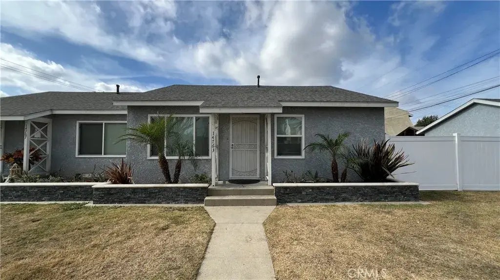 We are please to offer this 2 bedroom, 1 bath home situated on a duplex in the city of Bellflower. This single-story home has new paint, Central AC and heat, newer floors, inside laundry, large backyard, newer bathroom and light fixtures throughout the home. The 1 car garage also has a driveway to accommodate a 2nd car. This home is fresh, clean and ready for move in. There is only one shared wall with yard to the front and side of this home. This property is currently undergoing exterior stucco work to make the inside and outside even more beautiful. Call today to set up appointment