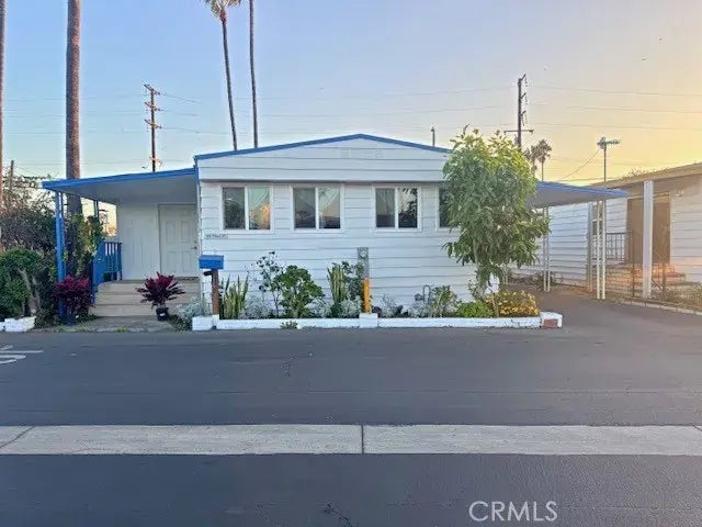 This is a beautiful mobile home for people 55 and over in Santa Ana and very low rent . It has been remodel as laminate floors , cabinets ... look like new . It has 2 bedrooms and 2 bathrooms and cover patio when seller bought it . The living room is very large . Island kitchen is very good for the eating place . There are swimming pools in the park for people relaxing . There are 2 parking in the carpot next to the mobile home . It close to restaurants , markets, shopping, schools...