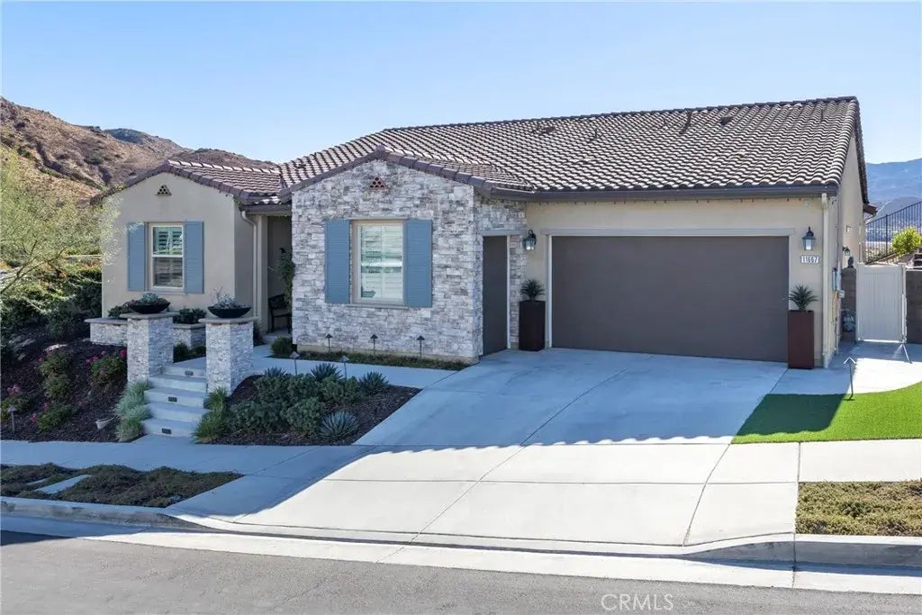 Welcome to Terramor, an award-winning gated 55+ community offering luxury living and spectacular views of rolling hills and Saddleback Mountain. Situated on a private tiered lot, this home combines elegance, privacy, and modern upgrades for the ultimate lifestyle. As you step inside, youll be greeted by soaring 10 ceilings, recessed lighting, and luxury vinyl flooring throughout. The open-concept design includes stacking sliders in the living and dining rooms, creating a seamless indoor-outdoor flow perfect for entertaining. The living room includes a 7.2 full surround sound system to make movies more entertaining. Surround sound enhances the den, primary bedroom, California room, and garage. The gourmet chefs kitchen features an oversized island, upgraded Bosch stainless steel appliances, and elegant finishes. Both guest bedrooms include en-suite bathrooms, while the primary suite offers stunning mountain views, his-and-her sinks, an upgraded shower, and an oversized walk-in closet with custom built-ins. The home is thoughtfully upgraded with 30 high-efficiency solar panels, an EV charging station, water softener system, a central vacuum system, smart garage door openers and a sophisticated Lutron lighting package controlled via an app. Built-in cabinets and overhead storage racks provide ample organization in the garage, which also includes a golf cart garage. Outdoors, the backyard is a true oasis with stamped concrete, pavers, low-maintenance artificial turf, a jacuzzi spa, built-in BBQ, outdoor fireplace, and a putting green modeled after Augustas famous 16th holeall f