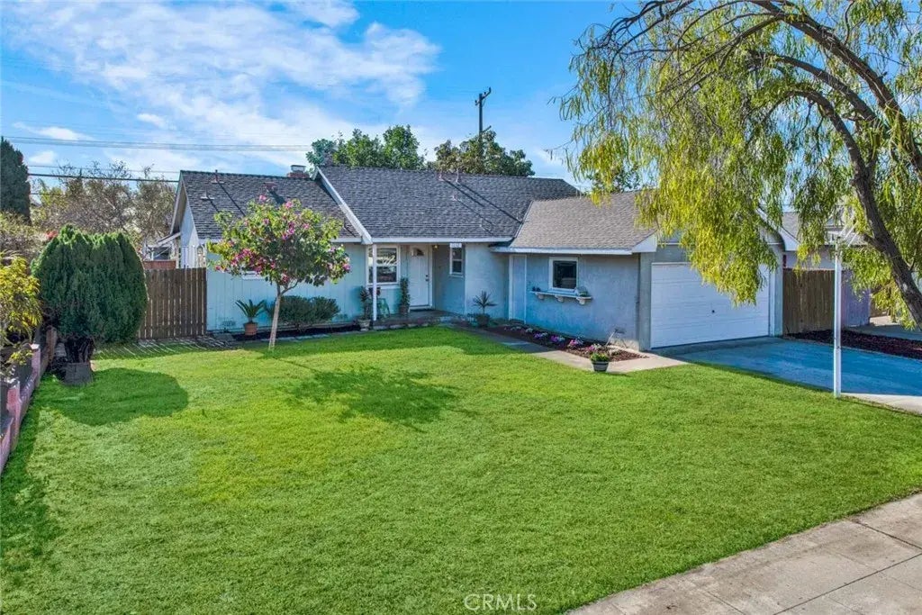 Welcome to this beautifully upgraded ranch-style home,perfectly situated in a vibrant neighborhood w/ convenient access to local attractions such as Disneyland,Angels Stadium and the Honda Center.This home is a perfect blend of modern upgrades & functional charm,offering 3 spacious bedrooms, 2 well-appointed bathrooms & a host of thoughtful upgrades throughout.The journey begins w/ a wonderful front yard,featuring a built-in basketball court & a gorgeous orchid tree that sets a warm, inviting tone.Beautiful flowers line the walkway,leading you to a quaint front porchideal for enjoying the Southern California weather.The manicured lawn and dual-pane vinyl windows add to the homes curb appeal,while stone pavered walkways provide a homey touch. As you step inside,you're greeted by rich hardwood flooring that flows throughout the home.The spacious living room is anchored by a beautiful brick fireplace w/ wood mantle,offering a cozy atmosphere.The expansive windows brighten the room, with an easy transition into the formal dining area creating an open and airy flow.The beautifully remodeled kitchen is a true highlight,featuring exquisite granite countertops,hardwood cabinetry & a full suite of white matching appliances.The kitchen is thoughtfully designed with a breakfast nook,travertine tile flooring,dual stainless-steel sink w/ an upgraded faucet,Kenmore 4-burner range w/a vented hood,a matching side-by-side refrigerator,an Emerson microwave & newer white Kenmore dishwasher.Each of the three bedrooms is generously sized:one measures 12 x 12,another 11 x 15,& third is 12 x 11.T