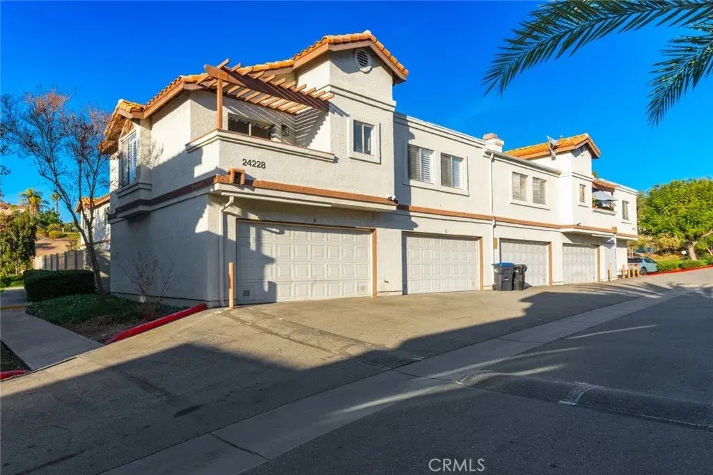 Welcome to 24228 Sylvan Glen Rd Unit E, a beautifully updated end-unit condo in the highly sought-after Cimarron Oaks XI HOA. This 2-story home offers 2 bedrooms and 2 bathrooms in a spacious 999 square foot layout. Both bedrooms and bathrooms are located upstairs, including a primary suite with ample closet space and an en-suite bathroom for added privacy and convenience. The home has been thoughtfully renovated with new flooring and fresh white paint throughout, creating a bright and modern living space. Vaulted ceilings and shuttered windows bring abundant natural light into the living room, which features a cozy fireplace. The kitchen is a chefs dream, with recessed lighting, sleek quartz countertops, a trendy chevron-patterned tile backsplash, and plenty of storage. Additional highlights include a small private patio off the dining area, ideal for enjoying the outdoors. The 2-car attached garage provides direct access to the home, and the property is located near a grassy area and community pool. This condo is centrally located near Carlton J. Peterson Park, shopping, dining, and schools. Easy access to the 57, 60, and 71 freeways makes commuting a breeze. With its blend of modern upgrades and prime location, this home is the perfect place to enjoy comfortable, convenient living.