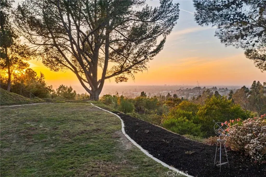 Perched high in the hills of Lemon Heights, 10961 Limetree Drive offers breathtaking city light, ocean, and hillside views. The sprawling 0.61-acre lot is a rare find, combining view and land! The expansive grassy yard and magnificent trees create privacy and a serene outdoor retreat. Imagine enjoying Disneyland and Angel Stadium fireworks from your own sanctuary, with natures beauty framing nearly every room! The homes timeless charm is enhanced by its floor-to-ceiling windows and soaring ceilings which bathe the interior in natural light and create an inviting, airy atmosphere. Situated on a single-loaded street, this four-bedroom, three-bathroom home offers unparalleled privacy and tranquility throughout its 2,500 square feet of open living space and thoughtful design. The unique floor plan includes a bedroom conveniently located near the main living spaces. Upstairs, the primary suite features a private balcony for enjoying the scenery, along with two secondary bedrooms and a full bathroom, offering flexible living options. The living room, open to the kitchen with its cozy fireplace, offers access to your park-like backyard with a covered patio for outdoor dining. Enjoy the view from a custom kitchen with maple cabinetry, stainless steel appliances, granite countertops, and a breakfast nook. This space also seamlessly connects to a side deck with a granite pass-through window and bar, perfect for entertaining. Just a few steps down from the entry is the family room, a warm and inviting space for gatherings or even a playroom. The use of glass throughout the home blends