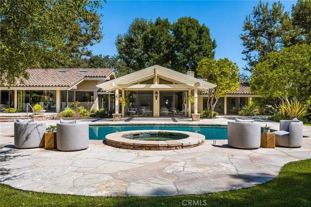 This breathtaking Montecito style estate with unparalleled craftsmanship set on 1.2 acres of grounds is offered for the first time since it was meticulously constructed. Only a handful of properties in Lemon Heights have been landscaped to such a degree with natural stone covering expanses of terraced grounds, vine covered patios warmed by a stone fireplace, a lighted tennis court, pebbled pool & spa, mature live oaks, putting green, an orchard of sweet smelling citrus and avocado trees. The main house is a sprawling ranch with 5355 square feet on one level. Both elegant and rustic, rough sawn ceilings & walls of glass marry the interior with the exterior seamlessly. Rarely seen finishes of hand-hewn parquet flooring & rough-sawn ceilings along with walls & walls of glass from which to enjoy views of the luxe hotel-like grounds only begin to define the elegance & investment that went into creating this stand-alone property. Inviting spaces include grand entry & foyer, enormous living room with fireplace, beamed ceiling & walls of glass. An adjacent library is warmed by a brick fireplace & offers bookcases & a wet bar. Curated iron chandelier & sconces adorn the formal dining room along w/ paneled walls, built-in china storage & a courtyard w/ fountain. A fabulous family room & pub-style game room are complete with vintage pool table, full bar & stunning fireplace and naturally flow into the breakfast room w/ unobscured views of the resplendent grounds. Sage-colored stone counters, furniture quality cabinetry and vaulted ceiling w/ skylights highlight the kitchen which inclu