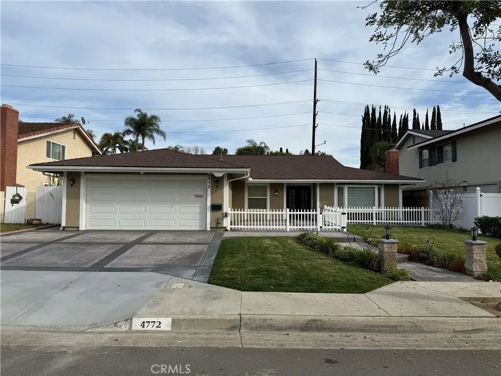 This stunning 4-bedroom, 2-bathroom home is located in a highly sought-after Yorba Linda neighborhood within an award-winning school district, including Fairmont Elementary, Bernardo Yorba Middle School, and Yorba Linda High School. Step inside to discover an abundance of natural light, soaring ceilings, and fresh upgrades throughout, including new paint, carpet, and flooring. The spacious living room with a cozy stone fireplace flows into the dining area and a completely remodeled kitchen featuring brand-new cabinets, countertops, and appliances. The primary suite boasts a luxurious walk-in shower and updated fixtures, while the beautifully renovated hall bath offers modern finishes. Outside, enjoy a generous backyard with maturing fruit trees, a new patio slab and cover, and plenty of space for kids and pets. Additional features include an indoor laundry room, a two-car garage with a custom driveway, and central air. A perfect blend of comfort and stylethis home has it all!