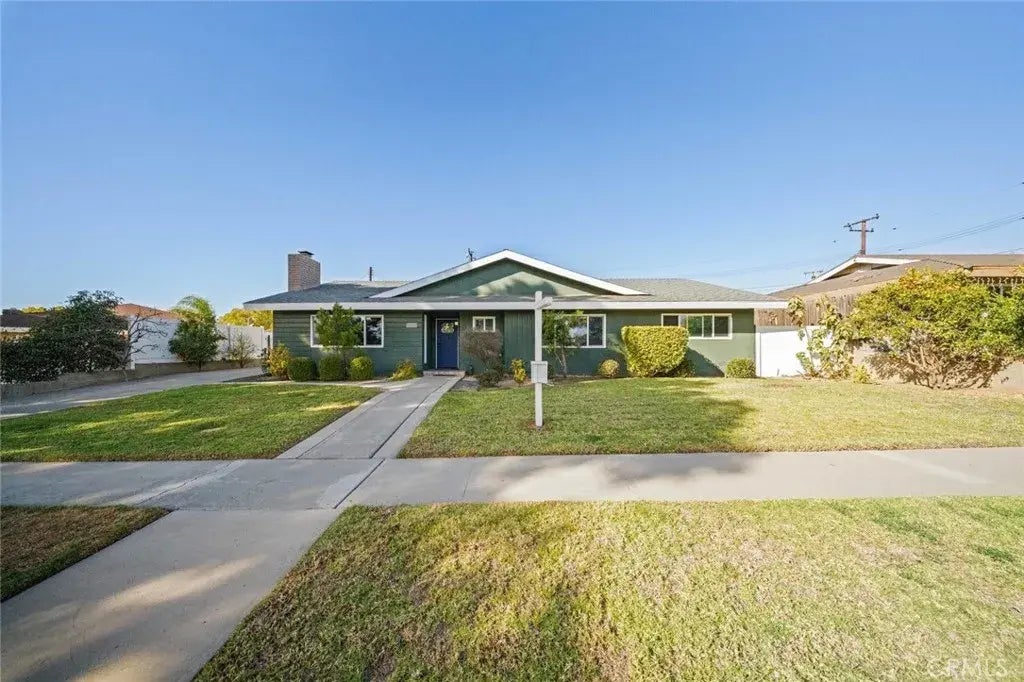 Stop your search, you found the One! Excellent Fullerton location around the corner from Fern Elementary School and within walking distance of the prestigious Sunny Hills High School. This single level pool home has an open floor plan with dark wood floors and crown molding throughout. The wood burning fireplace in the living room is inviting and cozy on those cold winter nights. The kitchen is updated with black granite countertops and white cabinets. The formal dining area is elegant and open to the glass windows facing the pool and heated spa. Imagine birthdays and family pool parties with both glass door sliders open, what great memories to be made! The bedrooms are large and spacious but especially the primary bedroom. Central AC and heat of course. The covered patio is perfect for rain or shine entertainment and relaxation. The two car detached garage in the back of the property opens the possibility of a separate ADU!. Stop by and take a look, you will not regret it!