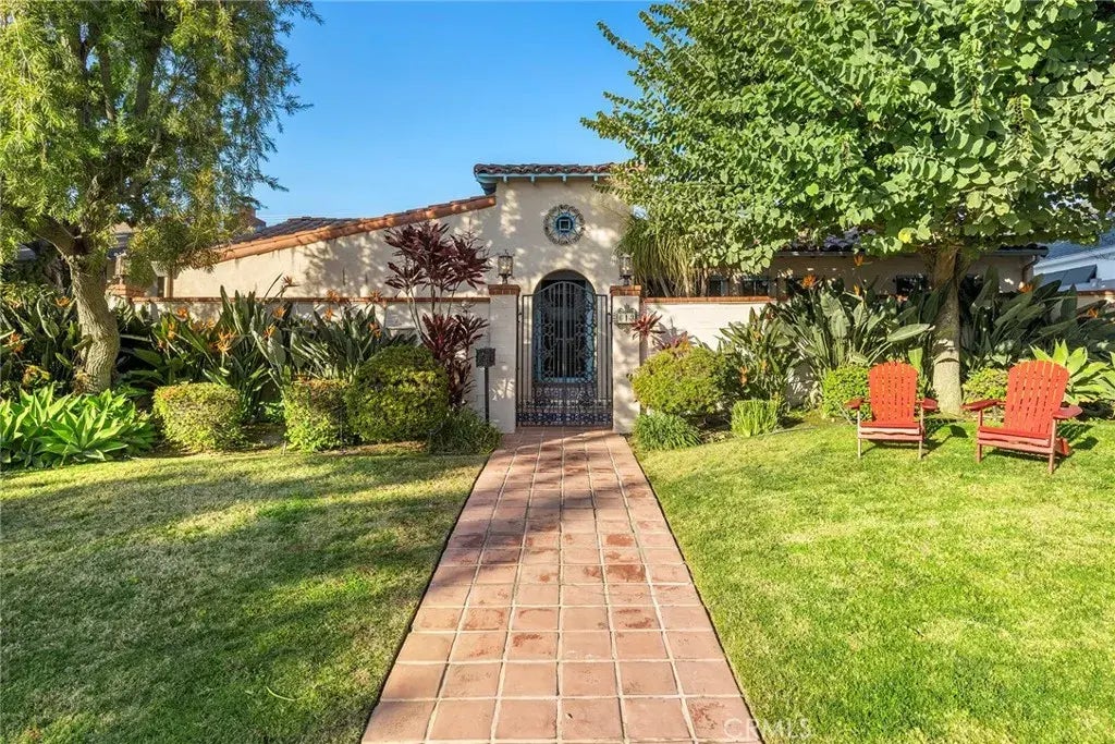 One of the finest examples of Spanish revival architecture in Golden Hills is now available to the market, featuring the best aspects of this iconic style, 613 W. Fern Drive is more than a home, its a feeling. Ensconced behind a stucco wall and iron gates, the front porch welcomes you in with private patio seating areas on each side of the front door. A statement in its own right, the hand crafted wooden front door leads into a captivating interior. Generously scaled public spaces provide for both ideal daily living and entertaining. The barrel ceiling of the living room and faux fireplace are true highlights as are the multiple original French pane windows with decorative iron bar accents. Adjacent the living room is the dining room with hardwood floors and a coffered ceiling detail and striking iron chandelier. A remodeled kitchen features granite counter and natural stained wood cabinetry plus a suite of S.S. appliances including fridge. A breakfast nook and coffee bar complete the kitchen. A French door leads out to the resort like backyard. Surprising in its scale is the separate family room with wonderful beam ceiling details and a stylish remodeled gas fireplace which is flanked by the stunning stained glass windows. A unique feature of dual primary suites with Spanish inspired en-suite bathrooms provides a widely versatile number of uses, both bathrooms enjoy custom and colorful Spanish tiles and custom cabinetry and showers. An additional bedroom and bathroom complete the living spaces. A true escape awaits outside with a BBQ island palapa with counter seating, dua