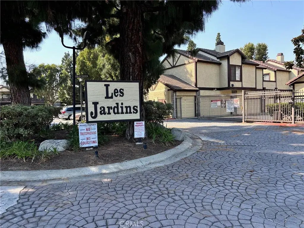 Welcome home to Les Jardines. Charming Condo in a gated community with 1bedroom & 1 bath downstairs unit. Bedroom with walk in closet and living room with glass sliding door open to nice size patio area for those summer days BBQ or just lounge and relax. New Quartz counter top in kitchen and bathrooms. Tile flooring through out with laminated wood floors in the bedrooms. 1Car detached garage and inside stackable laundry hook up ready. Community features 2 swimming pool and clubhouse and water falls and pond. Walking distance to schools and minutes away from freeway and shopping.