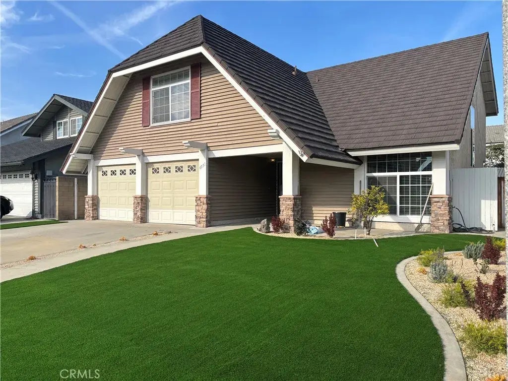 Newly upgraded single family home in a great neighborhood in the city of La Palma. A fabulous curb appeal is created by stunning exterior architecture as well as the newly landscaped yard. 4 bedrooms and 2.5 baths. Approx. 2500 SF. Brand new wood like water proof flooring in most areas except for the kitchen and baths. New paint. New artificial turf and new flower beds with brand new sprinkler systems. Dual pane windows with new blinds. A double entry door leads you to an open and bright living room with soaring high ceilings. A formal dining room with a stylist ceiling fan/light. The gourmet kitchen is open to a family room and offers beautiful cabinetry, granite countertops, recess lighting, a central island with bar sitting, and stainless steel appliances. Remodeled baths with granite countertops, newer vanities, frameless shower doors, and low flow toilets. Many recess lights in the spacious front bedroom. A walk-in closet in the master suite. Laundry hook-up in the garage. Central AC and heating. Many fruit tress in the yard. A great south facing home on a very quiet street! Centrally located--easy access to FWY 91, 605, 22. The BBQ in the backyard may not work--The owner won't fix or replace it. The refrigerator is included without warranty. Well priced! Don't miss out!