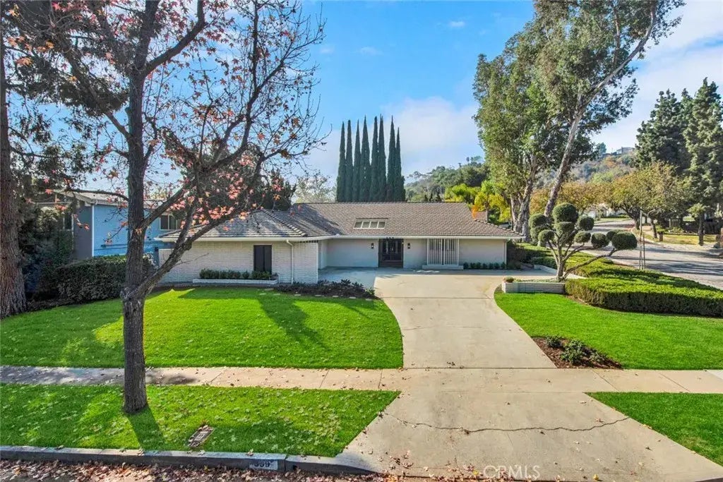 Welcome to 359 Camino Del Sol, a charming single-level home nestled in the tree-lined streets of the desirable Altos de Monterey community in South Pasadena. Situated on an oversized corner lot, this property features an expansive floor plan with four bedrooms, three bathrooms, large driveway, gated courtyard, fresh interior/exterior paint, and new carpet. The spacious living room boasts a cozy fireplace, large picture windows, backyard access, and connects to the dining room. The light-filled kitchen is equipped with granite counters, ample cabinet space, side yard access, and a breakfast nook. Adjacent to the kitchen, the family room features built-in shelving, making it ideal for entertaining and everyday living. The generous primary suite offers an en-suite bath with a walk-in shower and direct access to the backyard. The private backyard is complete with a large grass area, mature landscape, and multiple seating spaces. Additional highlights include a direct-access two-car garage, indoor laundry room with built-in cabinets and sink, and a short walk to the highly-rated Monterey Hills Elementary School. Conveniently located just minutes from parks, shopping centers, entertainment, and with easy access to the 5, 10, and 110 freeways, this home is a must-see! Experience the best of South Pasadena living at 359 Camino Del Sol!