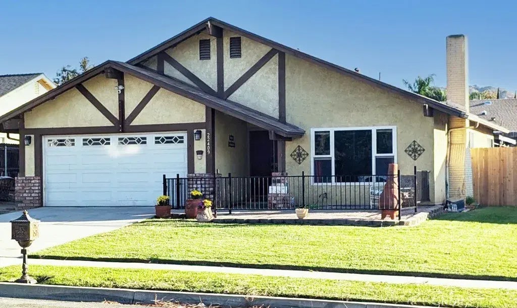 4-Bedroom, 2-Bath Pool Home! A double door entry leads to a spacious, open-concept living/dining area with vaulted ceilings and a gas fireplace. The kitchen was remodeled in 2022 and features a hammered copper farmhouse sink, granite countertops, glass-front upper cabinets with hammered copper hardware, coffee bar with wine fridge, under and over cabinet lighting, lazy-susan cabinets, easy maintenance tile floor with hammered copper tile accents, and a hand-painted wall mural. The master bedroom has an en-suite bathroom, custom closet organizers and direct access to the backyard and pool area. The backyard features a sparkling pool, jacuzzi, grassy yard and covered patio, perfect for entertaining. This well-maintained home sits on a quiet street in a highly sought after neighborhood in Grand Terrace with convenient access to freeways and many amenities including schools, shopping and parks.
