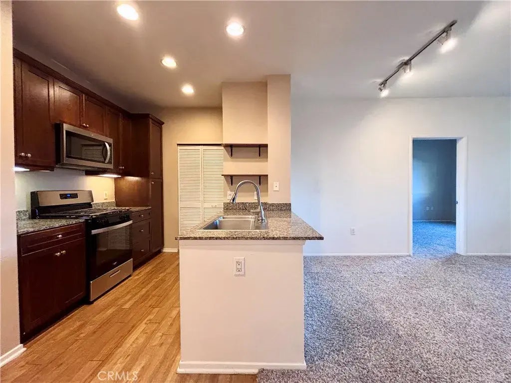 Beautiful Residence Two (A) model located on the first floor with open views at Avenue One! Two bedroom, two bathroom with approximately 1,052 Sq. Ft. Home includes natural granite slab counter tops & designer European-Style cabinetry in kitchen & bathrooms, black Whirlpool appliances, hardwood flooring in kitchen and entry, new carpet and paint, separate inside laundry room include washer & dryer, and dual glazed energy efficient windows. Side by side assigned parking in gated covered garage! Experience the latest in luxury urban living with a bounty of resort-caliber amenities such as planned group activities, business center, conference room, pool, spa fitness center, indoor basketball court, BBQ with picnic areas, club house with plasma screen and media lounge, putting green, billiard room, playground. Close to San Joaquin Nature Preserve.