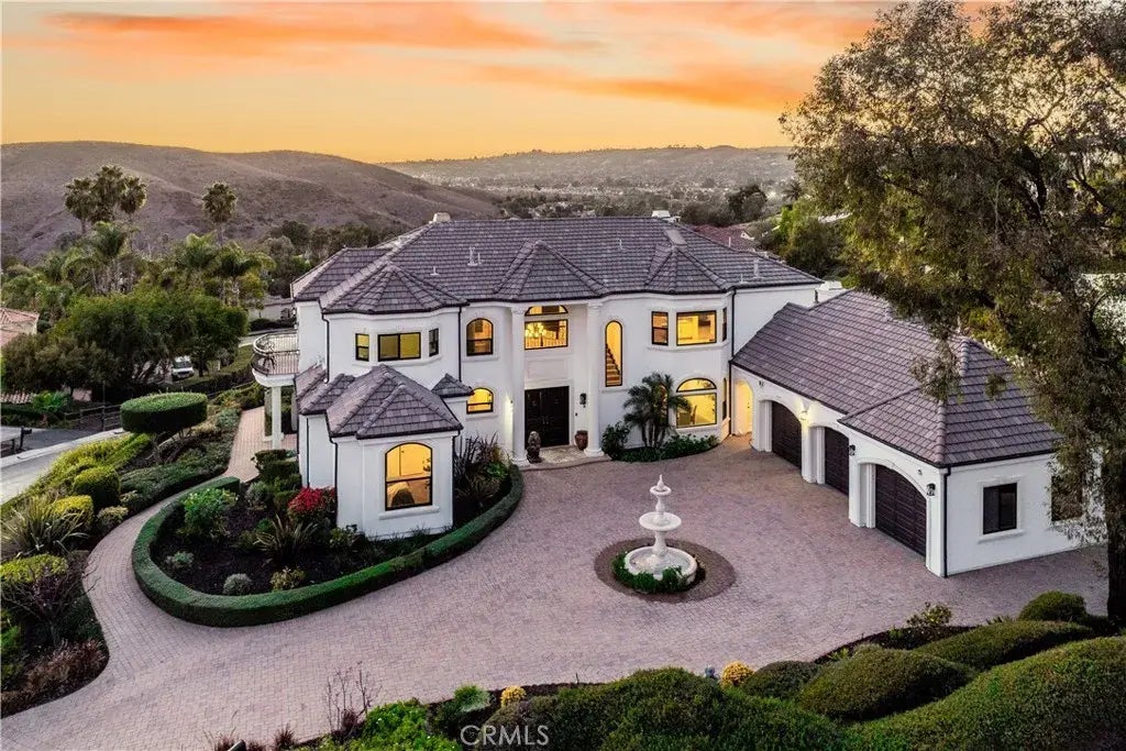 Welcome to Hidden Mountain Estates, an exclusive gated community where luxury and serenity meet in the heart of San Juan Capistrano. Perched on a premium 19,500 sqft lot, 28484 Via Mambrino offers nearly 4,800 sqft of thoughtfully designed living space with unobstructed canyon and city views that set the stage for breathtaking sunsets. This home blends timeless elegance with modern upgrades, creating the ultimate Southern California lifestyle. Step through the grand entrance to soaring ceilings and abundant natural light. The formal living room showcases picture windows framing stunning sunset views, while the adjacent dining room is ideal for hosting special gatherings. The renovated kitchen is a chefs dream, featuring quartz countertops, a spacious center island with cooktop and downdraft vent, double ovens, a built-in refrigerator, a walk-in pantry, and a bay window overlooking the peaceful canyon. The kitchen flows into the family room, where accordion doors open to a resort-style backyard for seamless indoor-outdoor living. The main level includes two bedrooms ideal for guests or multigenerational living, plus a dedicated office. Upstairs, the expansive primary suite offers a sitting area, private balcony with sweeping views, and a spa-inspired ensuite with a jetted tub, tiled shower, dual sinks, vanity area, and a walk-in closet. A junior suite and a large game or bonus room complete the second floor. The backyard is a private retreat featuring a lap pool, spa, gas fireplace, built-in BBQ island, and multiple seating areas with a backdrop of canyon, city lights, and s