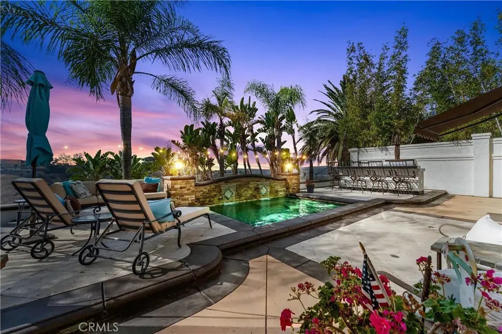 VIEW! VIEW! VIEW! SINGLE STORY LIVING WITH THE BENEFITS OF A 2nd Story! Exquisite Executive Home with Sweeping Views of the Hills and City Lights. Welcome to this stunning two-story home located in a Prestigious 24-hr-guard- gated community of Belsomet in Anaheim Hills. Nestled on a quiet cul-de-sac, this home blends the elegance of a single-story layout with the spaciousness of a two-story design, thanks to its thoughtfully planned master suite downstairs. Perfect for multi-generational living, in laws, or those seeking privacy, the home provides both comfort and luxury. This gorgeous residence boasts 5 bedrooms and 4 bathrooms. The Master Suite Downstairs features Views! Views! Views!. You will find the Gourmet Chef's Kitchen is truly a showstopper, with a Wolf Stove ( including a 6 Burner stove / Hibachi / Dual Oven and a Custom Range Hood) along with Another Dual in wall Oven for a total of 4 Ovens and Sub Zero Refrigerator. Custom pull-out drawers, a large island, and beautiful Granite Countertops Elevate the space. A Huge kitchen Island with seating for 6 make this home ideal for cooking and entertaining. The open-concept living and dining areas are designed for both family gatherings and entertaining, with an effortless flow into the outdoors where you can enjoy breathtaking views of the hillside and city lights, especially during the stunning sunsets. Step outside into your private retreat: the backyard features travertine patios, a built-in-BBQ, and custom electric awnings to provide shade when needed. Relax by the Spool with flowing waterfalls. From every corner,