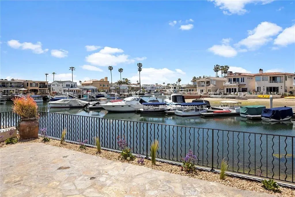 Welcome to your dream, waterfront, modernized Tuscan Villa in the privately gated, exclusive community of Balboa Coves! This magnificently recently remodeled 2-story residence boasts fabulous water views, offering the epitome of luxury coastal living. The two story foyer welcomes you into this captivating home boasting cool neutral tones with natural wood elements throughout. Anchored by a stone fireplace and flanked by multiple sets of French doors is the great room that has been perfectly arranged with a recessed built-in bar and open to both the kitchen and rear patio making indoor outdoor living a breeze. The kitchen is a chefs delight; boasting top-of-the-line Kitchen-Aid appliances, quartz countertops, custom cabinetry, and is undoubtedly a space where culinary creativity can flourish. Additionally, the main floor features a coveted main floor bedroom with a private bath, a laundry room with direct garage access, and a convenient powder room. The second floor is dedicated to relaxation and privacy. The luxurious, oversized primary suite is a true oasis, complete with fireplace, and triple French doors leading to the inviting private balcony overlooking the water. Also, there is a generous walk-in closet, spa-like bathroom with dual vanities, deep soaking tub, and spacious shower. Down the hall from the primary suite, you will find 2 additional bedrooms both ample in space that share a jack-and-jill bathroom. Outside, a large patio with built-in stainless-steel grill awaits, with plenty of room to entertain or relax as you watch the water lap on shore just steps away.