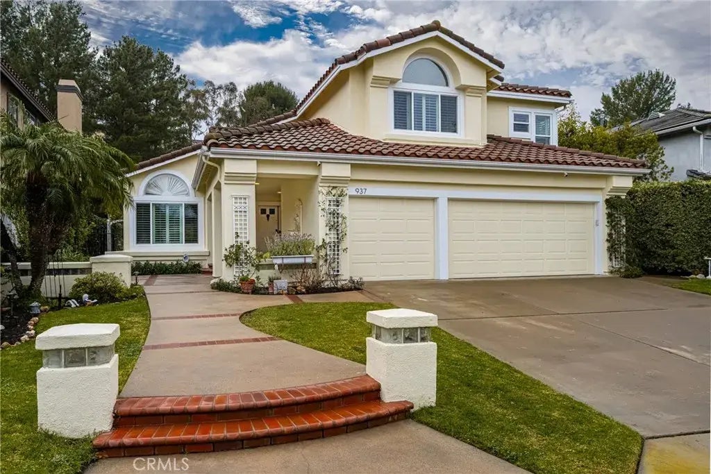 Welcome to 937 S. Barton Court, a stunning 5 bedroom, 4 bath residence nestled in the highly sought after Summit Springs community in Anaheim Hills. This professionally designed freshly painted exterior and interior home ideally located on a quiet cul-de-sac spans across 2863 square feet of living space on a spacious 9424 square foot lot. Enjoy the colorful garden walk approach as you enter through double doors into the spacious foyer with soaring ceilings over an elegant formal living room punctuated with a beautiful Boston Steinway piano adjacent to a formal dining room featuring French doors that open to the gorgeous back yard. The charming kitchen which opens to a spacious family room, boasts top of the line Thermador oven, DCS stove top, custom cabinetry with lighted pantry shelves and white tile counter top center island all overlooking the family room with beautiful fireplace and floor to ceiling custom built in cabinetry. Step through the sliding glass door onto a patio and entertainers dream with a gas fire-pit, new built in BBQ island overlooking a plethora of professional mature landscaping surrounding the breathtaking pebble tec bottom pool with an in floor pop up cleaning system, Aqua link App Control, new pool tile and coping and new pool equipment all providing peace and relaxation. The main floor spacious bedroom and bathroom provides convenience for one level living, guests, or multi-generation living. Completing the first level is an interior laundry room with sink for added convenience. The second level has 4 additional bedrooms each offering comfort and
