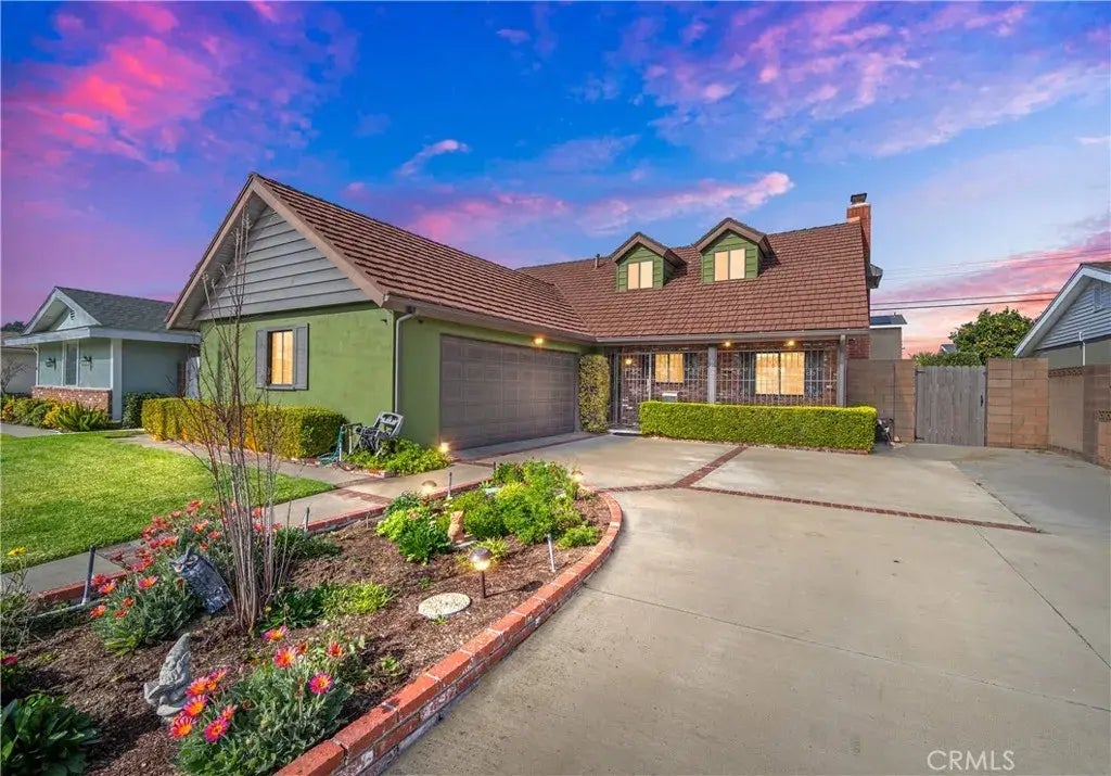 Located in a premiere West Garden Grove location adjacent to Edgar Park, this the largest floorplan that Garden Park has to offer... a spacious 5 bedroom, 2 bathroom home. With 2 bedrooms and a full bathroom downstairs and 3 more bedrooms upstairs, this home is spacious and offers a ton of living space inside and out! A long curved driveway with a large side yard allowing for RV or boat parking. This home has been loved and meticulously maintained by long time owners and includes an updated kitchen with ample storage, remodeled bathrooms, newer heater and ductwork, air conditioning installed, fresh paint, 40 year Alcoa metal roof, newer water heater, smart garage door opener, and custom landscaping with timed sprinklers. This is truly a place to call your own. This move in ready home attends Barker Elementary, Bell Intermediate and Pacifica Highschool. This one won't last long!