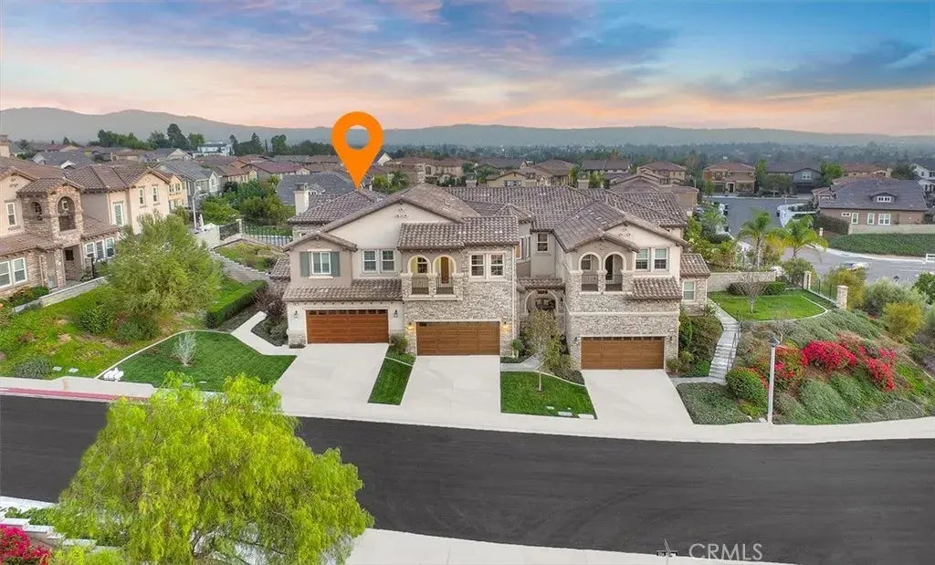 Welcome to this exquisite home, nestled in the sought-after Heritage at Vista Del Verde community in Yorba Linda. 17892 Via Roma is an end-unit view home set against the serene backdrop of the rolling hills of Yorba Linda and adjacent to Black Gold Golf Course, this property offers the perfect blend of luxury and breathtaking city light views. As you approach the home, you're greeted by an impressive entry featuring a grand spiral staircase and custom tile flooring, setting the tone for the elegance that lies within.