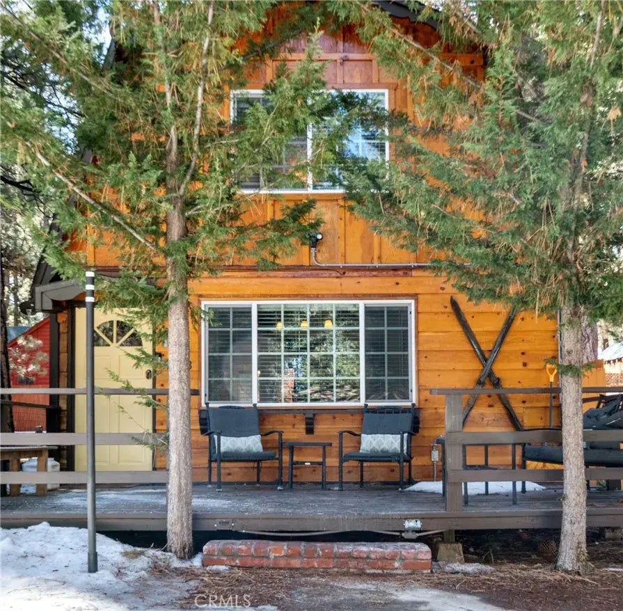 This charming Gambrel cabin features 2 bedrooms and 1.5 bathrooms. Located in Lower Moonridge, surrounded by beautiful, tall pine trees, providing a serene and picturesque setting. The property boasts an updated kitchen, wood burning fireplace, and T & G wood ceilings. In the backyard yard there is a spa and a newly built concrete patio - complete with built-in gas lines for a BBQ and a fire pit, perfect for outdoor entertaining. Imagine sitting back and relaxing under the starry sky, surrounded by the majestic pines, and if youre lucky, you might even hear the wind rustling through the trees its truly magical. The cabin is ideally situated between Snow Summit and Bear Mountain, making it a prime location for winter sports enthusiasts. Blocks away from the city's free Trolley and the shuttle to the ski resorts. Additionally, it is near excellent hiking trails, the Big Bear Zoo, the Moonridge Corridor, and the Bear Mountain Golf Course. Big Bear Lake is just five minutes away. The Village, with its delightful shops and restaurants, is about a ten-minute drive. This home is a successful short-term rental,with a 5-star rating, and is a "Guest Favorite." Whether you are looking for a great house to make your primary home, a second home, or a successful short-term rental, this home is a great choice.