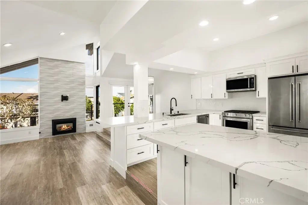 Experience and live the beach lifestyle in this absolutely gorgeous home minutes from the beach and steps from everything Corona Del Mar has to offer. This upstairs 3 bedroom unit from street to alley has been completely remodeled from top to bottom. Enter through the side stairs and your own Dutch Door and immediately feel at home. The family room and kitchen act as a great room, where walls of windows and a private balcony bring in the sunshine and prevail privacy being on the second story. A spectacular designer fireplace with tilework to the ceiling is a focal point of the room, perfect for our cooler evenings to enjoy. The kitchen has everything you need and even a slider opening to another balcony for a BBQ and private dining options. Three bedrooms are down the hallway inclusive of the large primary suite with a walk in closet and en-suite bathroom plus built in shelving, no need for a dresser if you choose. One of the secondary bedrooms also has an en-suite bathroom. Stackable laundry is in the hall. This home has been redone top to bottom including the a/c unit and water heater, making the utility bills even more affordable. You'll have a one car space in the shared 2 car garage (shared with downstairs neighbor) and a spot behind the garage for your second car. Located a block from the Goldenrod pedestrian bridge that leads you directly to Inspiration Point where you can watch the sunset each evening. Or walk the other direction and make it a dinner and move night with ample gourmet restaurants to choose from and the Port Theater to follow. Groceries, pharmacies, g