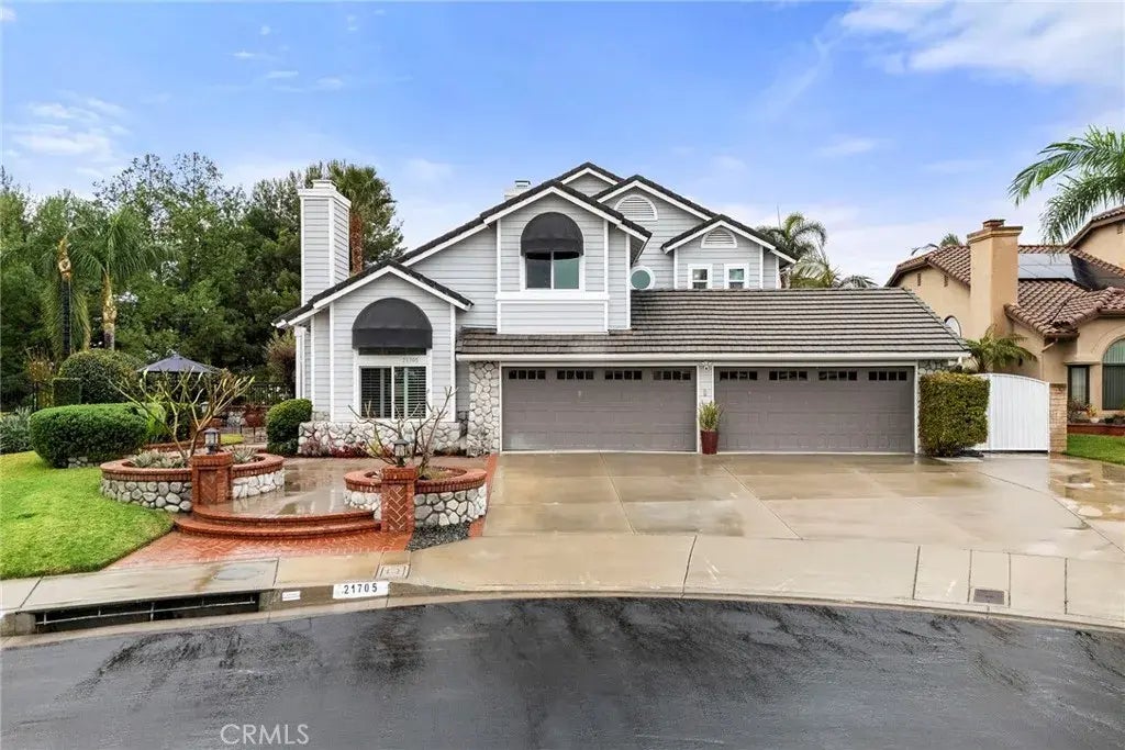 Nestled atop the hills in Yorba Linda at the end of a cul-de-sac, this spacious Brock home boasts a fabulous view of the city lights, hillsides, Disneyland fireworks and on a clear day a view of Catalina in the distance!! It features a formal living room with fireplace and separate formal dining room, split staircase, dual pane windows, plantation shutters, recessed lighting and dual unit central air conditioning. The updated kitchen with silestone counters and white cabinets opens to the family room with cozy fireplace, built-in TV unit and expansive windows encasing the sweeping views. The downstairs bedroom and bath are perfect for those overnight guests. The third fireplace warms the master bedroom suite and retreat...gain access to the walkout viewing deck with glass partitions through the sliding glass door. Two additional bedrooms and one bathroom complete the upper story. Relax on the patio with its retractable awning while enjoying the beauty of the lush landscaping and the sound of the bubbling in-ground spa...you've found your own little paradise!! The four car garage is perfect for the car enthusiast. The solar panels, which are purchased, will keep you cool on those summer evenings. No HOA, freeway close, excellent Placentia/Yorba Linda School District. Close proximity to parks and miles of walking trails. Come buy!!