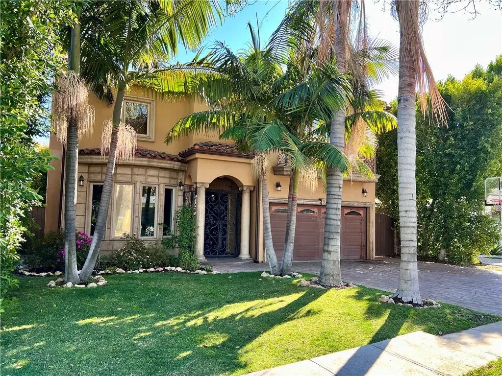 Luxurious Mediterranean Retreat in a PRIME location-in the center of it all WITHOUT the city life noise! This stunning Mediterranean masterpiece is ideally located walking distance to the vibrant energy of Ventura Blvds premier dining, shopping, & entertainment. Designed for both grand entertainment and everyday luxury, this elegant estate boasts soaring ceilings, an open-concept layout & timeless architectural details. Featuring: a living room, dining room, family room, large kitchen, 1 bedroom downstairs and 4 bedrooms upstairs, 5 bathrooms, a separate loft/office area, a separate laundry room, 2 car garage with new garage door and a VERY PRIVATE & TRANQUIL rear yard with salt water pool and spa! The chefs kitchen is the heart of the home, featuring an oversized cooking area, charming breakfast nook & a commercial-grade Viking stovetop/oven, perfect for culinary enthusiasts. Travertine flooring on the first level & rich hardwood upstairs add warmth & sophistication. Upstairs: the expansive primary suite is a true sanctuary, complete with hardwood floors, a private flex spaceideal for a home office, gym, or relaxation lounge & a spa-inspired bathroom. 3 additional bedrooms - 1 with its own private ensuite bathroom & 2 other bedrooms that share a Hollywood/Jack-and-Jill full bathroom, both with walk-in closets w/built-ins. An open loft area perfect for a home office or a quiet area to enjoy your favorite book. Step outside into your secluded backyard oasis, where lush landscaping, mature tall trees create an incredible PRIVATE and SERENE retreat, perfect for entertaining fa